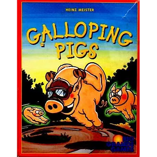 Galloping Pigs is a cute little 'not-quite-a-children's-game' game where players are collecting points in the form of food. Plastic pigs are placed on a track made from cards laid in a circle, and then players are given cards in the colors of the pigs. Each turn, a player selects a card, and moves the corresponding pig one space forward. If the space in front is occupied by another pig, then the moving pig 'leapfrogs' that, and this can continue until the pig takes the lead, which gives the active player a food card. Play goes on like this until all cards for the round have been played, however in order to keep the food (points) you collect during a round, your final movement for the round must score some more food.