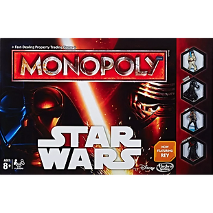 Conquer the Star Wars galaxy in this intergalactic, hyperdrive version of the fast-trading property game, Monopoly! You can play on the Rebel or the Empire side, and your mission is to conquer planets and build bases so you can dominate the universe! When players land on your planets, they owe you rent - but the same is true when you land on theirs! Powerful Force cards will alter your destiny, but there can be only one winner. When every planet is owned, the game is over - and if the Force is with you, you'll be the ultimate winner!